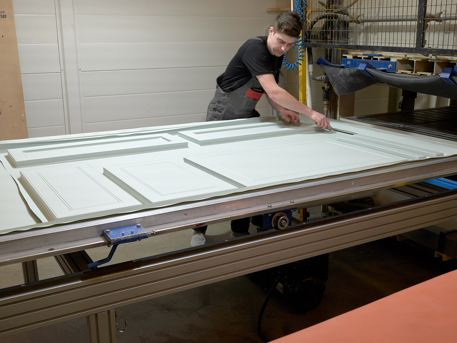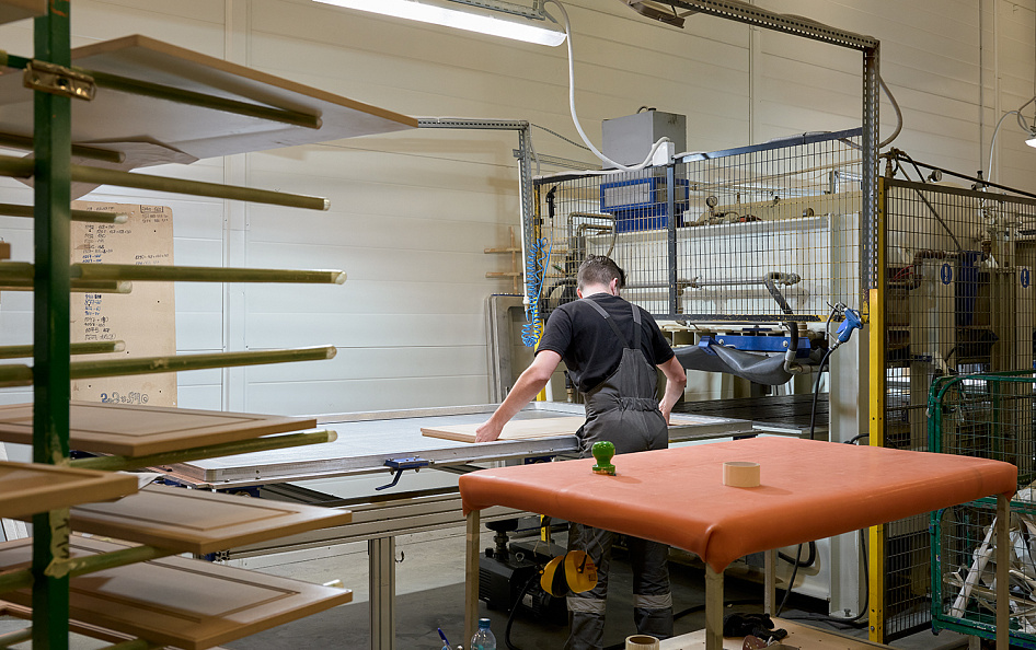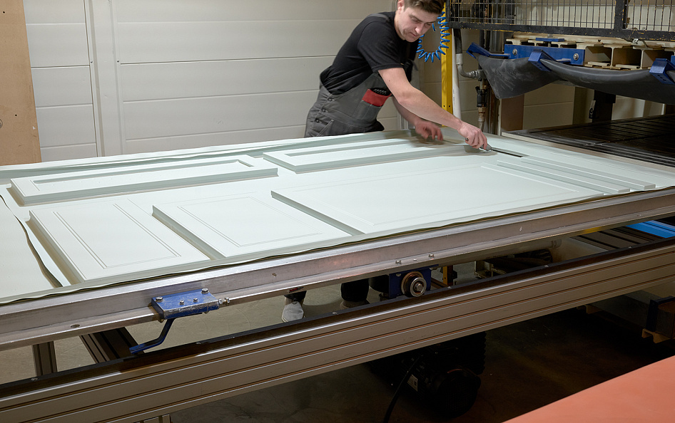 Покрытие заготовок экомембраной с помощью вакуумного пресса