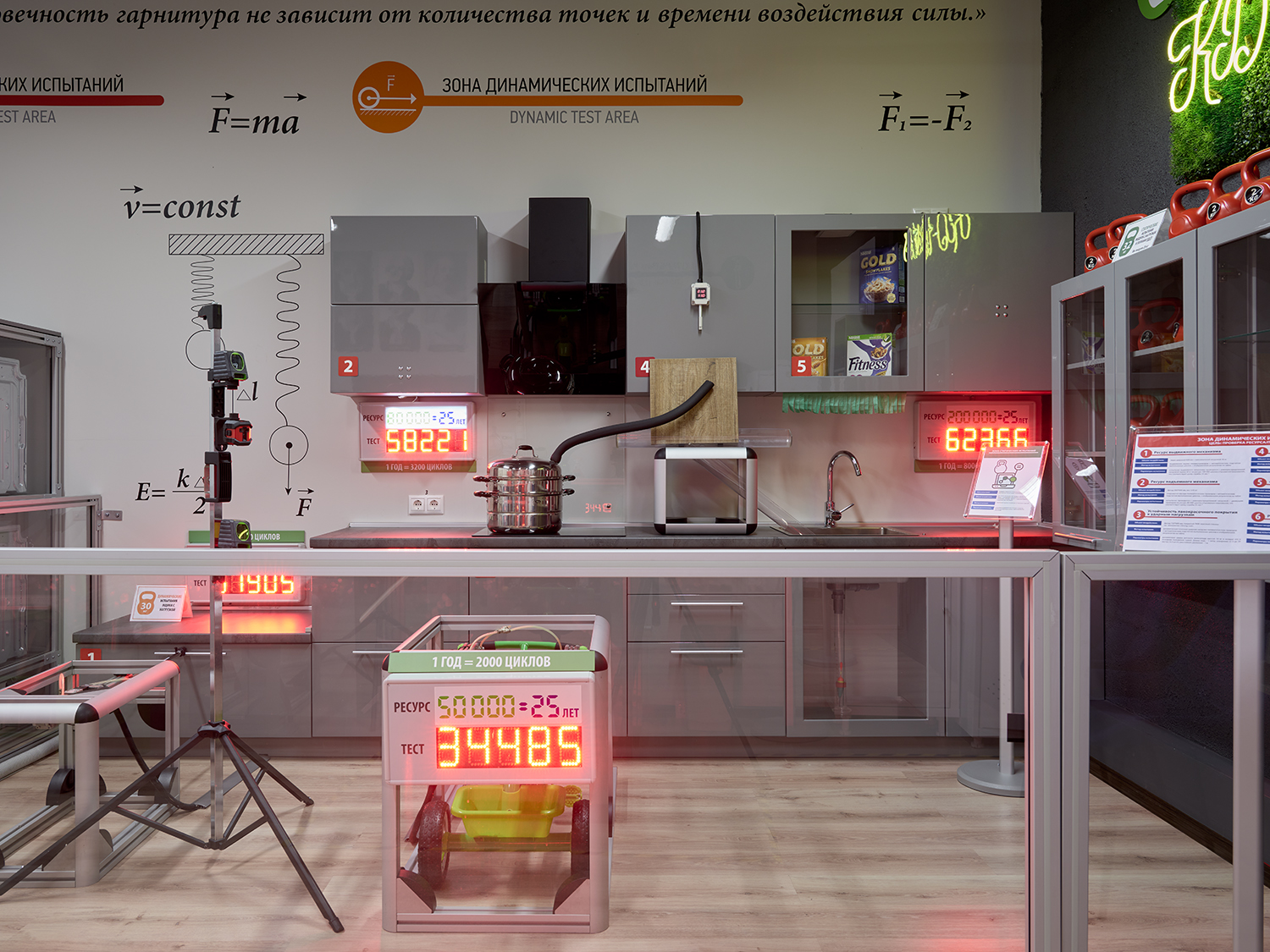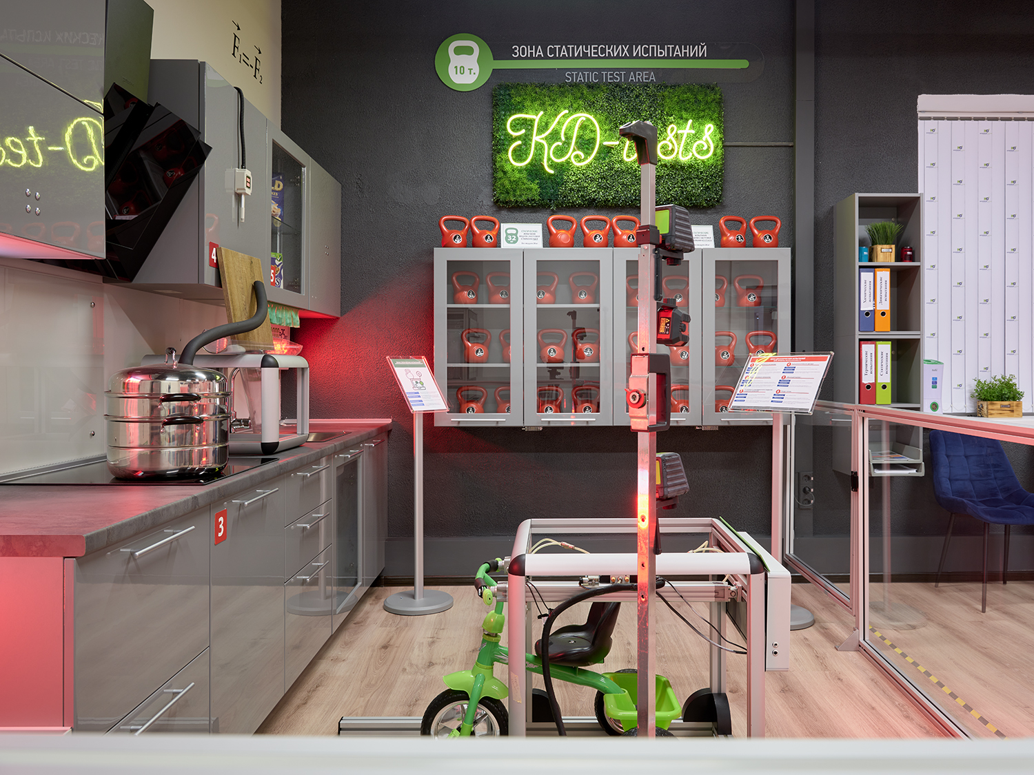 Комната поделена на зону статических и зону динамических испытаний
