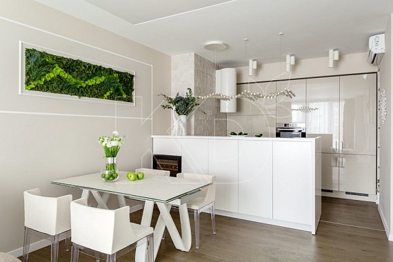 Еще одно достоинство белой мебели – ее универсальность. Этот цвет удачно вписывается как в классические, так и в современные интерьеры, и гармонично сочетается абсолютно с любыми другими оттенками. Выбирая белоснежный глянцевый гарнитур, вы сможете воплотить в жизнь все свои дизайнерские задумки и фантазии: выбрать яркий или приглушенный цвет обоев и напольного покрытия, декорировать фасады золотой патиной, лепниной или инсталляциями из кристаллов Swarovski, украсить интерьер красочным фартуком-скинали с оригинальной фотопечатью.