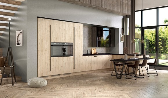 Кухни в бежевом цвете выполняют из разного сырья. Например, бренд «Кухонный двор» использует для производства древесину бука, дуба, ясеня, а также качественный МДФ. Для изготовления столешниц применяется керамика, натуральный и искусственный камень.