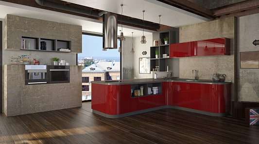 Бордовая угловая кухня
