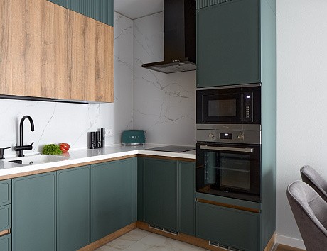 В таких случаях приходится адаптировать параметры кухонного гарнитура. Можно изменить высоту напольных кухонных шкафов, глубину фасадов для кухни, а также варьировать длину кухни в зависимости от особенностей помещения. Именно так рождаются проекты, где учитываются привычки и образ жизни семьи, а не только средние размеры кухни.