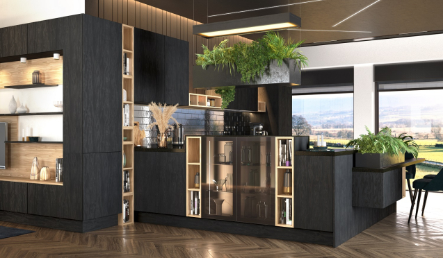 Самыми стильными в 2023 году будут считаться черные кухни. Такие версии выглядят очень интересно как в глянцевом, так и в матовом исполнении. Помимо монохромных черных моделей, производители выпускают комбинированные варианты.