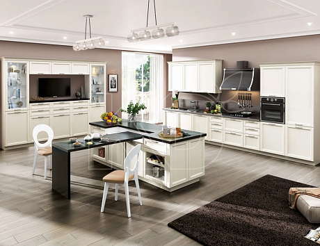 Белые классические кухни в ассортименте фабрики «Кухонный двор»