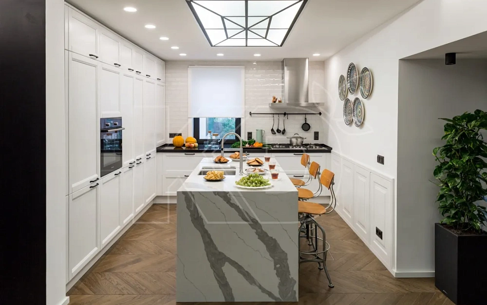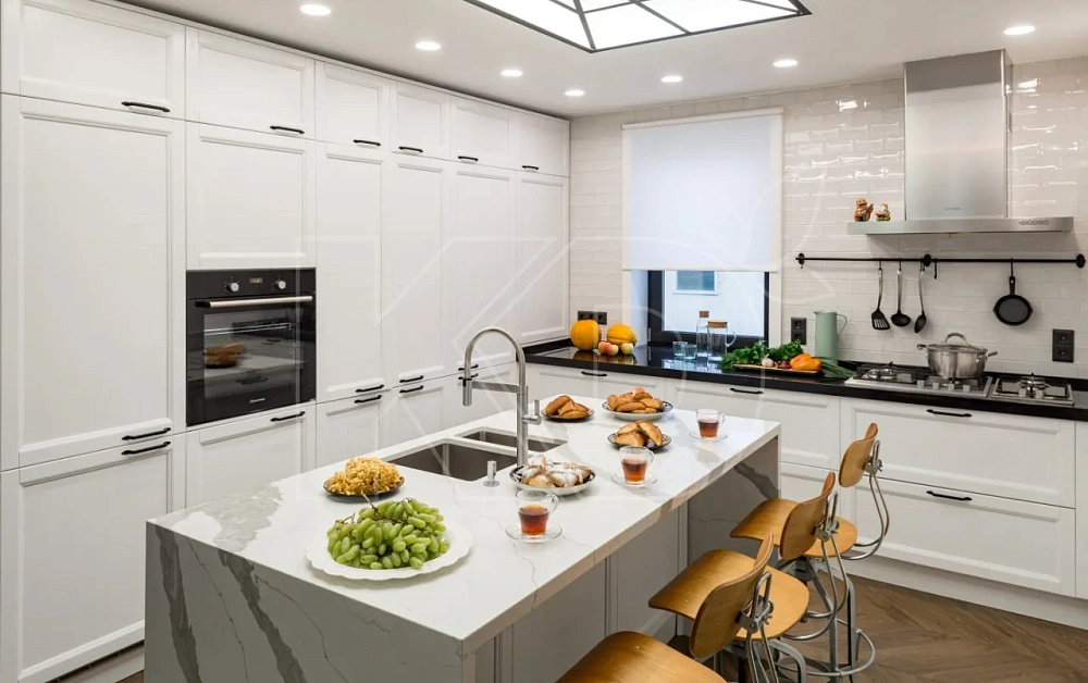 • Кроме того, шпонированные фасады демонстрируют высокую устойчивость к внешним факторам и легко поддаются реставрации. Небольшие царапины можно без труда зашлифовать, а крупные дефекты скрыть с помощью шпоновой заплатки, что позволит кухне сохранить безупречный внешний вид на протяжении долгого времени.