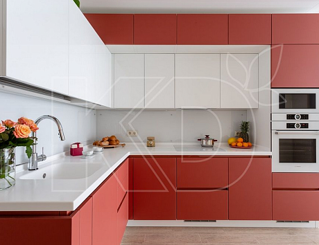 Любители современных решений оценят современные угловые кухни элит класса, характеризующиеся яркими цветами и хромированными деталями. Фасады в этих моделях часто выполнены из матового стекла с пескоструйным рисунком или витражей.