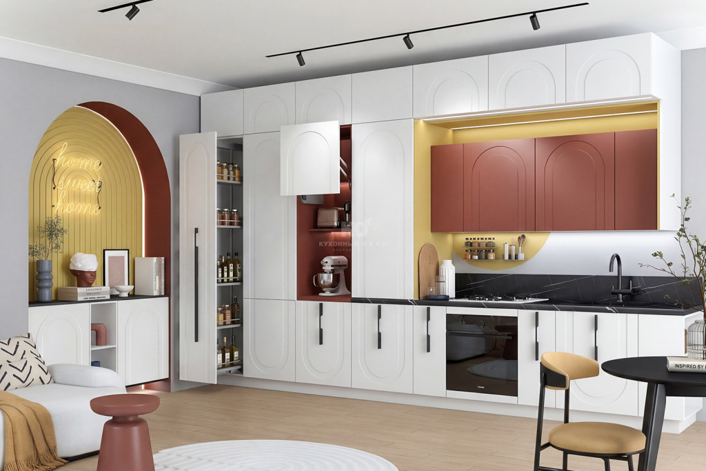 Интеграция сенсорных смесителей, подсветки с датчиками движения и систем «умный дом» превращает кухню в пространство, где техника словно предугадывает ваши шаги. Быт становится проще, ресурсы расходуются экономно, а каждое привычное действие — быстрее и удобнее. Такая система делает современный кухонный интерьер не только стильным, но и умным, комфортным и готовым подстраиваться под ваши привычки.