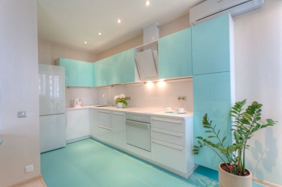 • Богатая палитра оттенков. Глянцевые поверхности могут иметь любую расцветку. Помимо классических белых, бежевых и коричневых гарнитуров, производители выпускают версии желтого, красного, фиолетового, серого и зеленого цвета. Кухни на заказ могут сочетать в себе несколько оттенков. Такие комбинированные версии смотрятся весьма необычно и привлекательно.