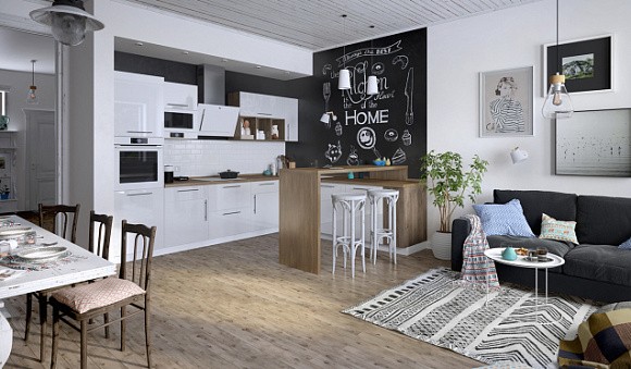 Белые скандинавские кухни прямой формы позволяют создать стильный интерьер малыми усилиями. Вы можете выдержать светлом цвете все помещение, а чтобы оно не смотрелось слишком скучно использовать яркие акценты.