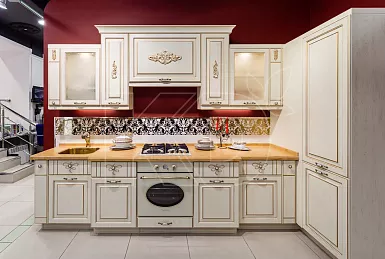 Фасады гарнитура – самая дорогая его часть. Для производства элитных кухонь применяется натуральная древесина дуба, бука и ясеня. Также на итоговую стоимость фасадов влияет наличие декоративной отделки – резьбы, стеклянных вставок, мозаик и других элементов.
