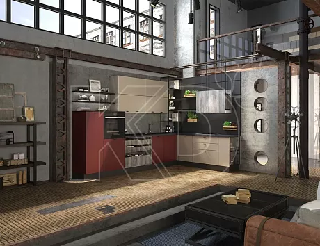 Как обустроить бежевую кухню в стиле лофт