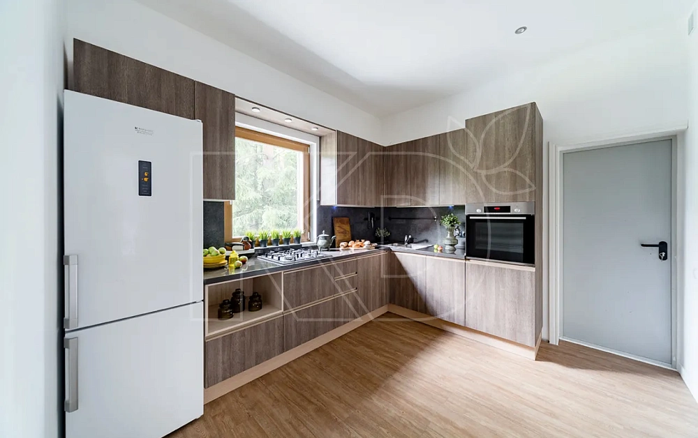 Владельцы просторных квартир и загородных домов часто прибегают к применению П-образных комплектов. Благодаря этому обеспечивается несколько рабочих зон и большое количество места для посуды, бытовой техники.