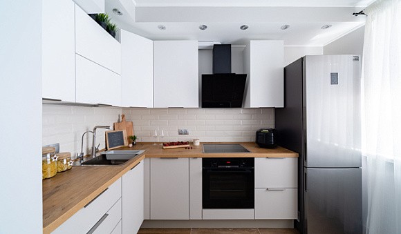 Конечно, можно купить готовый вариант кухни и удачно интегрировать его в небольшое пространство. Однако лучший вариант – разработка индивидуального проекта с учетом расположения коммуникаций и соблюдением принципа рабочего треугольника.