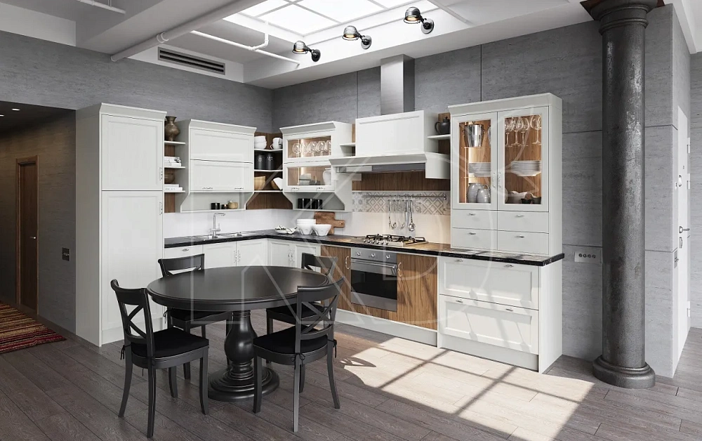 Для создания кухни на заказ от производителя подбирают твердые сорта древесины — ясень, дуб, бук. Для защиты древесины от негативного воздействия применяют особые виды пропиток и специальное покрытие.