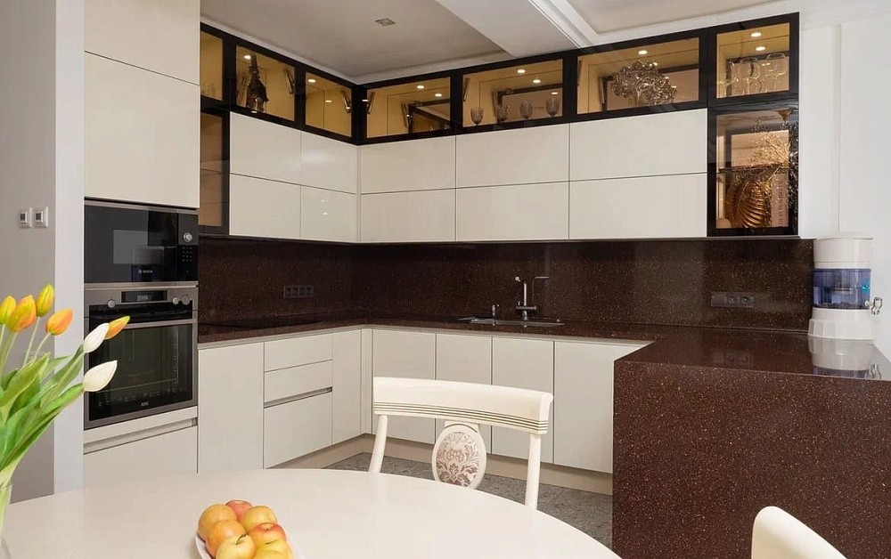 - Широкий ассортимент. Мебель для кухни такого цвета может иметь любую планировку.