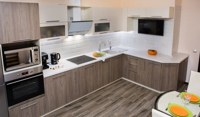 Коричневый кухонный гарнитур - сочетание с другими оттенками