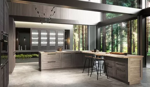 Основные стили кухонного гарнитура коричневого цвета