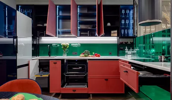 Красная кухня особенно востребована при создании классического стиля, а также в современных концепциях лофт, хай-тек, арт-деко.