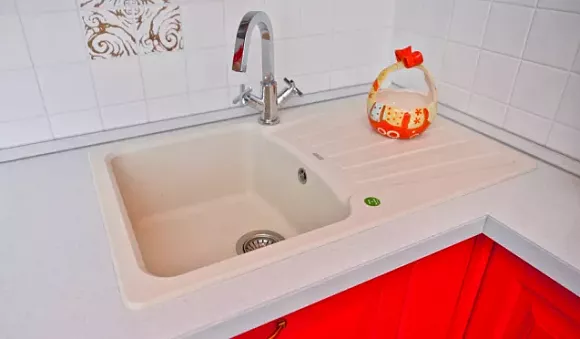 2. Кухни красных цветов стоит разбавлять другими тонами. Целесообразно варьировать оттенки и добавлять красный цвет в качестве декора: светильники, фасад, набор посуды, фартук.