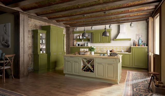Зеленые кухни – отличное решение для частного дома. Использование сочных акцентов позволит расслабиться и настроиться на кулинарные эксперименты. Поскольку зеленый цвет является естественным тоном, он легко впишется в деревенский интерьер.