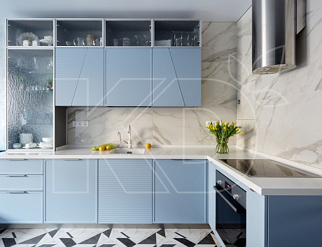 Голубая кухня создает ощущение воздушности и спокойствия, поэтому на это цветовое решение обращают внимание всё больше хозяек. Однако важно понимать, что работать с таким оттенком достаточно сложно. Здесь понадобится помощь профессионального дизайнера. В этом материале мы расскажем, кому подойдет гарнитур в голубых оттенках и какими деталями его стоит дополнить.