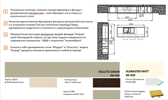 Если Вы ищите универсальный вариант, который будет идеально подходить именно Вашему дому, то кухня Астрид может стать отличным решением. Это лаконичное оформление, использование качественных материалов, хорошая дизайнерская работа, уникальный стиль. Вообще кухня в современном стиле – это правильное вложение денежных средств, потому что в ней все продумано до мелочей. Куда установить бытовую технику, как практично распределить полочки, все продумано специалистами еще до покупателей.