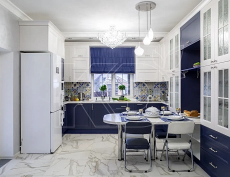 Кухни в неоклассическом стиле напоминают классические интерьеры. Но в отличие от них они лишены тяжеловесности, монументальности и показной роскоши. Их отличают четкие линии, выдержанные формы и симметрия.