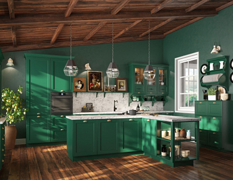 Многие хозяева убеждены, что кухни в светлых тонах скучные и однообразные. Дизайнеры утверждают, что причина такого суждения заключается в неправильном оформлении. Ведь светлые тона можно сочетать с более яркими, комбинировать с фотообоями, обыгрывать витражами, оригинальными ручками, светильниками и прочими аксессуарами. К примеру, зеленую кухню можно оживить фактурой (камнем, деревом).