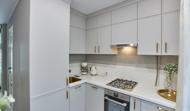 В приоритете освещение, которое может быть разноплановым в зависимости от модели гарнитура. Так, например, дизайнеры обновили интерьер классических прямых кухонь, добавив лоска, глянца и новых цветовых решений. В дизайне появились подсветка в виде небольших бра в угловых зонах, а также встроенное освещение по периметру.