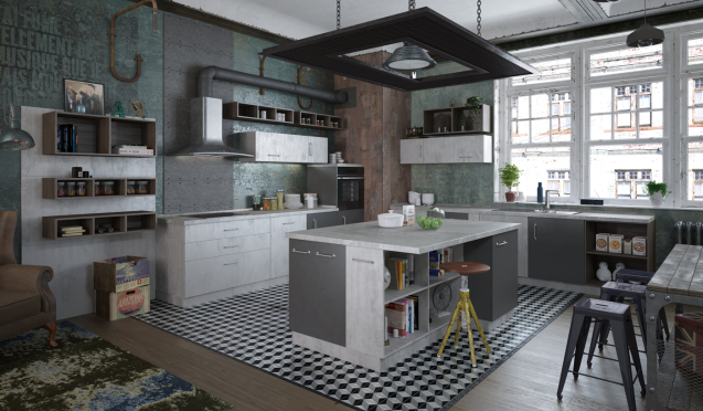 Кухонный гарнитур серого цвета в стиле лофт – демократичное решение для любителей простоты и удобства. Направление привлекает внимание простыми и нарочито грубоватыми формами, минимальным декором. В оформлении интерьера используются бетонные текстуры, кирпичная кладка, открытые коммуникации.