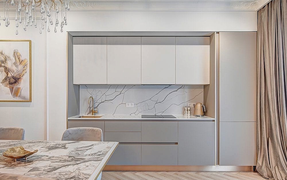 Например, если вы решили купить классическую кухню на заказ от производителя, то стоимость ремонта может быть выше, поскольку понадобится мебель из натурального дерева, которая отличается высокой стоимостью. Также на финальной цене отразятся карнизы, молдинги и т.д.