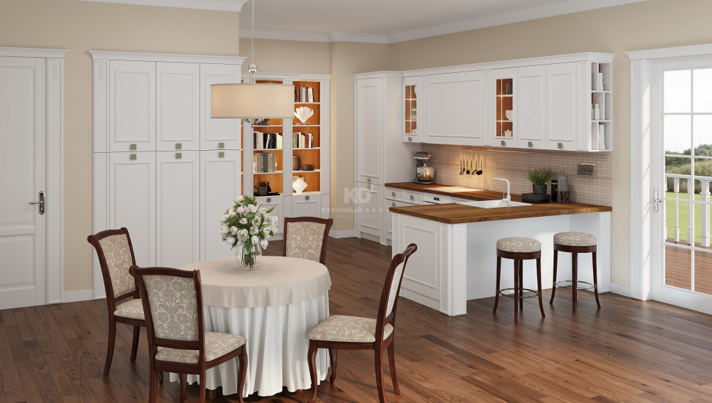 1. Классическая кухня. Классический стиль подразумевает деревянную мебель, иногда с узорами и резьбой, а также обилие бытовой техники и декора.