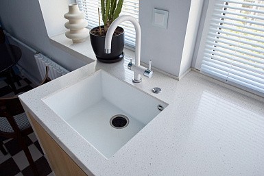 Нужно учитывать, что каждый из этих материалов имеет свою стоимость. Так, средняя цена плитки, укладываемой на пол, составляет от 800 до 2000 рублей за м2, а за квадратный метр рабочей поверхности из искусственного камня придется заплатить от 3500 до 6000 рублей.
