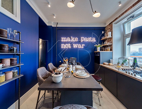 Над рабочей зоной можно сделать цветную подсветку. Это функциональное, практичное и стильное решение, которое создает романтическую атмосферу и позволяет не использовать основное освещение.