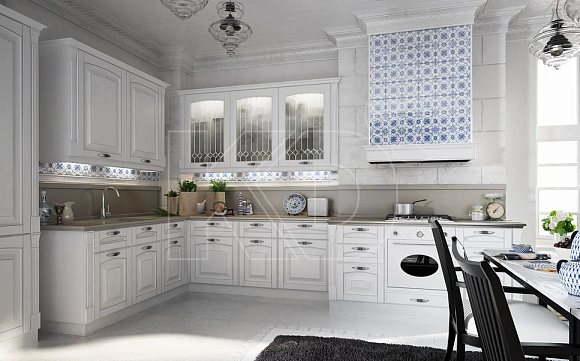 Фасады покрывают как матовой, так и глянцевой эмалью, украшают замысловатой фрезеровкой и патиной различных оттенков. Для классики характерно использование разнообразных декоративных элементов: колонн и балюстрад, витражей из матированного стекла, точеных балясин и резных карнизов, лепнины, инсталляций из сверкающих кристаллов Swarovski. Подчеркнуть благородство интерьера поможет столешница из натурального или искусственного камня, стилизованные под старину светильники, картины в позолоченных рамах. При выборе техники желательно отдавать предпочтение полновстраиваемым моделям, целиком скрытым за мебельными фасадами – они помогут сохранить безупречную гармонию в помещении.