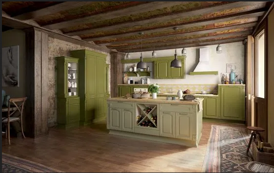 • Возможность реализации разнообразных стилистических концепций. Угловые кухни оливкового цвета хорошо смотрятся как в классическом, так и в современном исполнении.