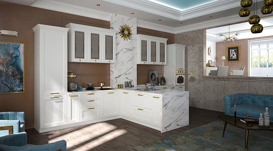 Полуостровные и островные кухни популярны, так как они выглядят стильно и обладают повышенной функциональностью. Остров может выступать в качестве элемента зонирования, использоваться как дополнительная рабочая зона или место для приема пищи. Если варианты кухни предполагают индивидуальное планирование кухни на заказ, то в нем можно разместить встраиваемую технику, плиту или даже мойку.