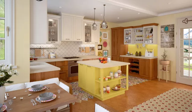 Желтый кухонный гарнитур - сочетания с другими оттенками