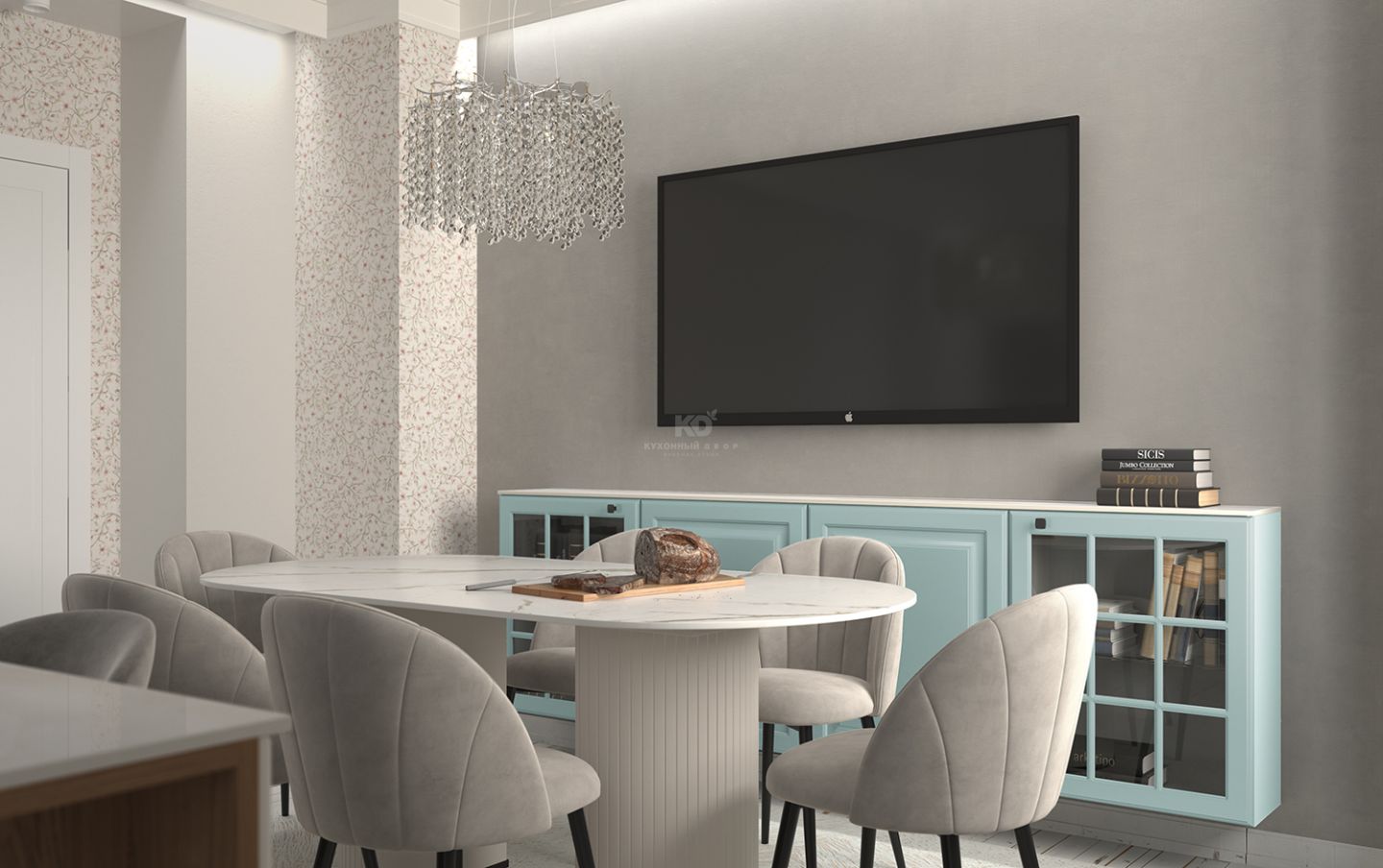 Шкафчики со вставками из стекла напоминают французские окна, характерные для домов исторического центра Парижа эпохи знаменитого градостроителя Османа. Эти прозрачные элементы придают кухне лёгкость, глубину и игру света, создавая ощущение утреннего парижского бульвара, залитого мягким солнечным светом.