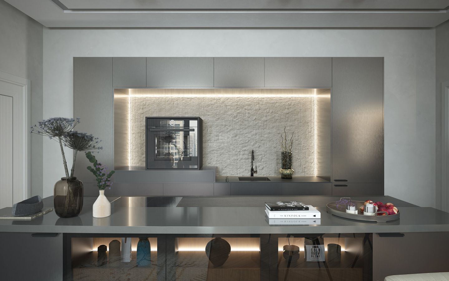 Симфония света и металла: кухня в стиле нуарного минимализма