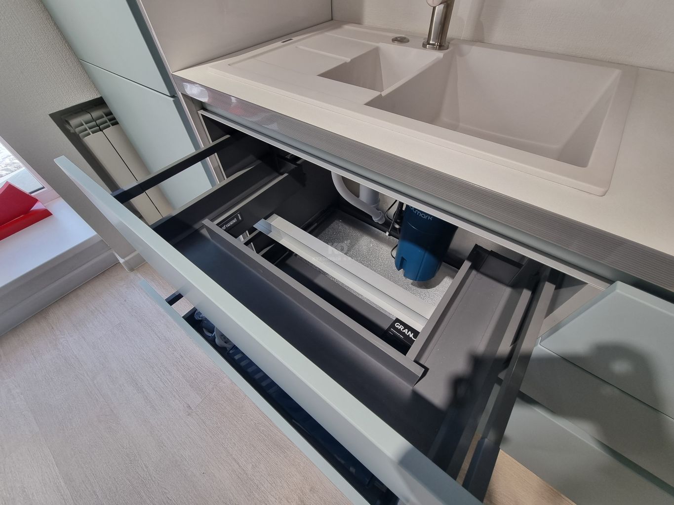 В стоимость образца входит: мебель, мойка, смеситель.